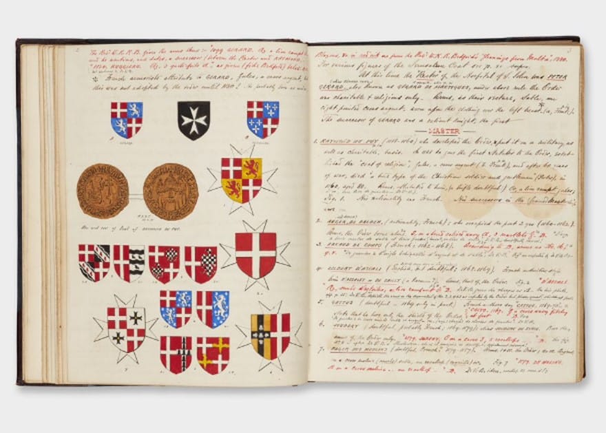 The project started with an inventory of the historic collection and an audit of the existing holdings against the old card catalogue system. During this stage, we discovered many unique and special materials that are representative for the Order’s continuous existence throughout the centuries. Some of the major themes reoccurring in the collection are the history of the Order of St John since its founding in Jerusalem by the Knights Hospitaller to its modern revival in England, the ecclesiastical, administrative and legislative aspects of the Order, the history of the crusades and of the military and religious orders in Europe and elsewhere.