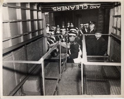 Three photographs from the Museum’s collection (displayed below) show a demonstration of a collapsible steel frame, manufactured by Steelway, which could be used with the stretcher to make a temporary bed in emergencies. Another photograph shows St John Ambulance Brigade personnel loading a stretcher onto frames installed in the back of civilian van, creating a rudimentary ambulance in time of need.